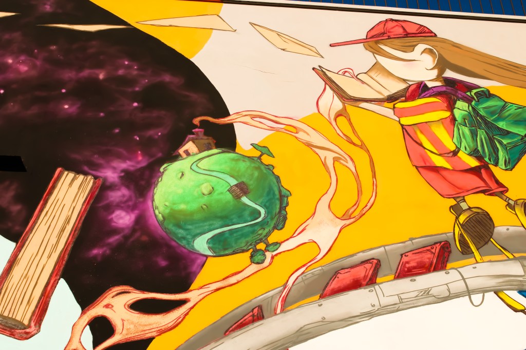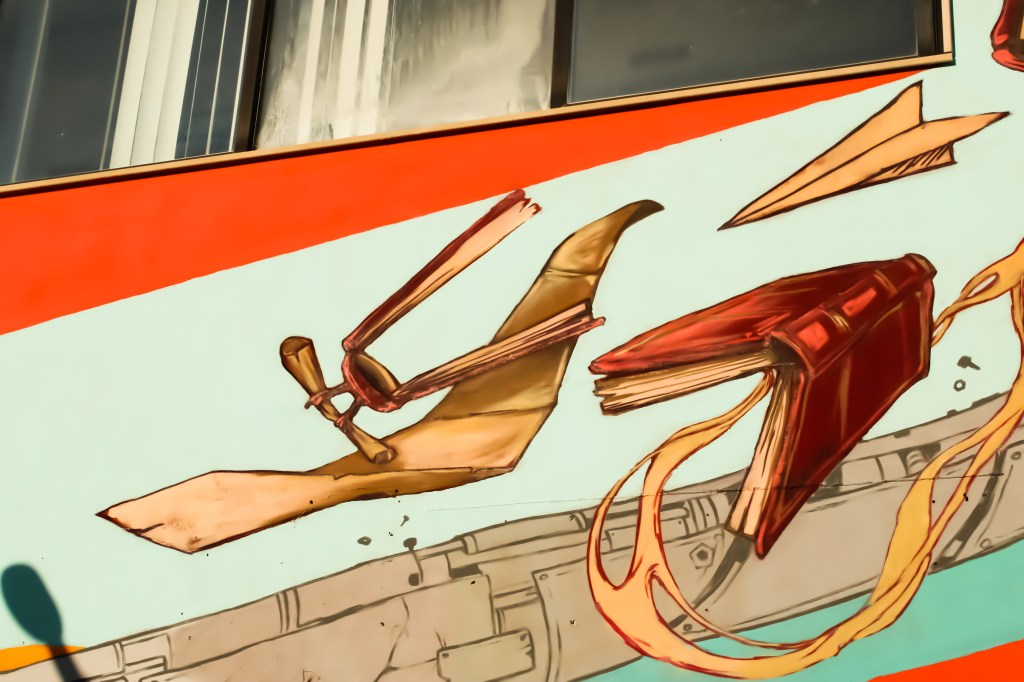 Il progetto “Libri per la pelle” sotto la nostra direzione ha già portato lo scorso giugno alla realizzazione di un’altra opera di street art sull’edificio della Community Library “L’Acchiappalibri” in Viale Ugo Foscolo, a cura dell’artista romana Alessandra Carloni.