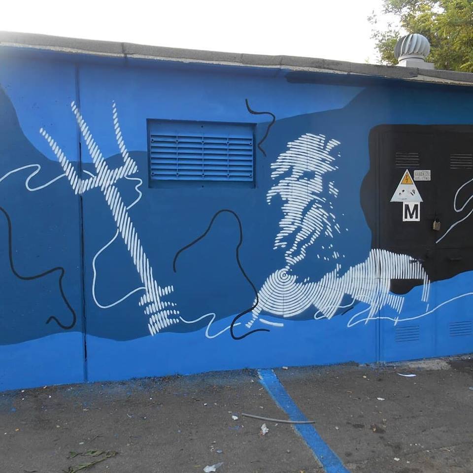 Sabotaje Al Montaje, the artist who has lived all his life on the Canarian Sea is particularly sensitive to the environmental issues. On the wall, created in Lecce, he focused on the problem of water pollution. The monumental representation of a man watching his fish highlights the presence of plastic caps caught by the sea instead of fishes. Once again, sensitivity to the traditions, to the activity of fishing, and the link with the place, the sea, became artistic pathway to critically express the conflicting dynamics of nowadays.